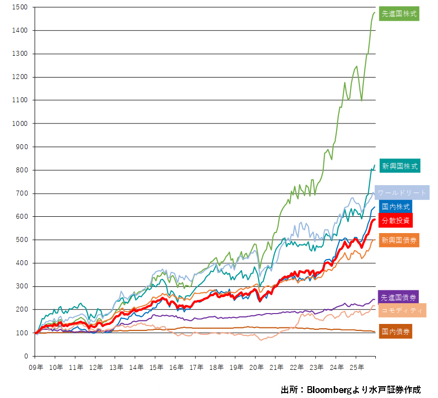- ※各資産とも、Bloombergが算出する代表的な指数を使用。
